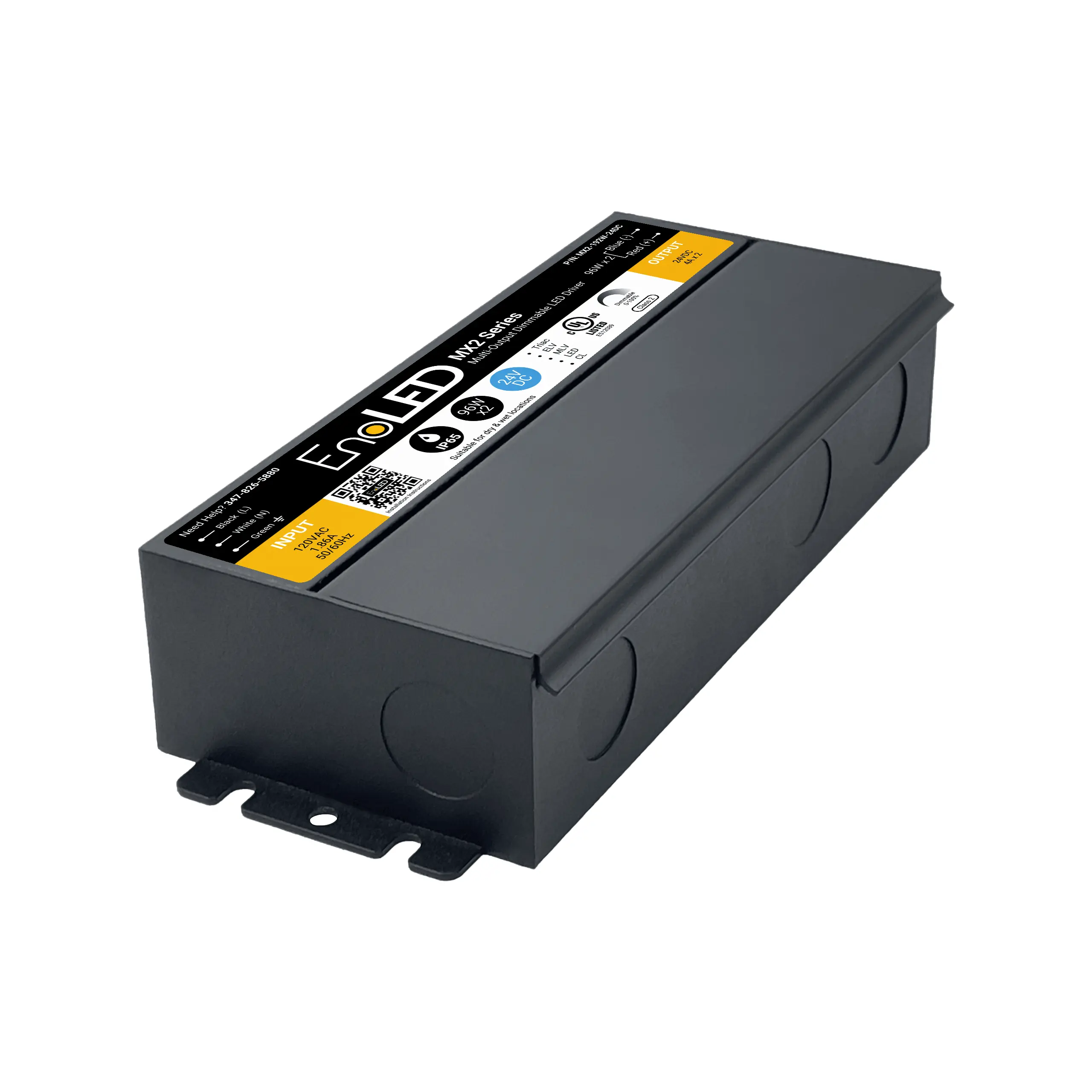 Multi-Channel UL Listed Class 2 specifications, it supports dimming down to 1% across various switch types: Incandescent/CLF/LED/MLV/ELV. With an 88% efficiency at full load and built-in protection features, it’s ideal for 24VDC LED Tape applications in both damp and wet locations.